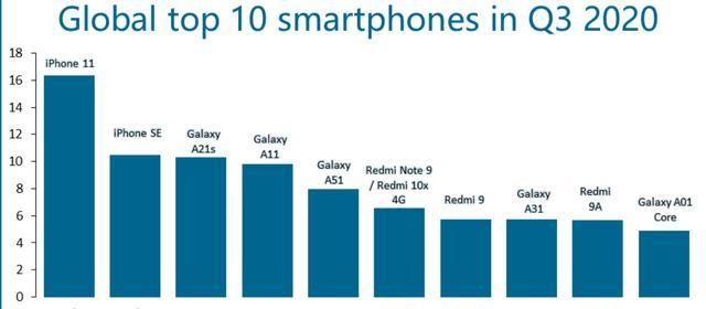 第六到第十是Redmi Note9,就是国内的Redmi 10X 4G版、Redmi 9、三星A31、Redmi 9A、三星A01 Core。具体品牌数量方面,在全球手机单品销量TOP10中,苹果占了两款,小米占了三款,其余五款为三星...