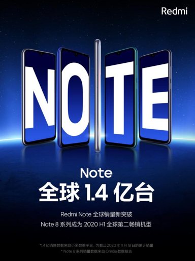 销量|红米Note系列全球销量突破1.4亿台!Note8系列畅销
