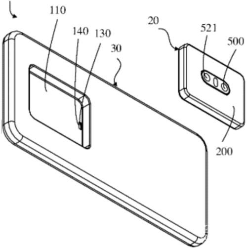 在专利上显示,OPPO完成这项可拆卸镜头的做法是将手机的背部做成了一块凹陷进去的区域,同时把手机镜头部分填充到这个位置,而单独可移动的相机模块的大小正好与之配合,从而达...