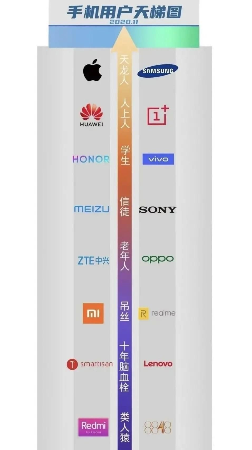 不知道你们对这个分类是怎么理解的,反正我是觉得有点不可思议!苹果三星能理解毕竟卖得贵,华为也是一样,但是一加就怎么是人上人了?难道一加用户品味独特?人家OPPO的用户也...