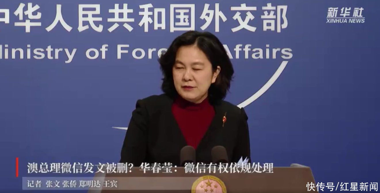 【 华春莹|澳总理微信发文被删?华春莹:微信有权依规处理 】针对澳大利亚总理莫里森称微信删除了他发表的一篇文章,外交部发言人华春莹3日在例行采访人员会上答问时说,微信管...